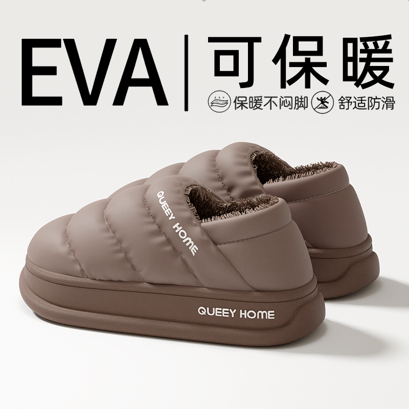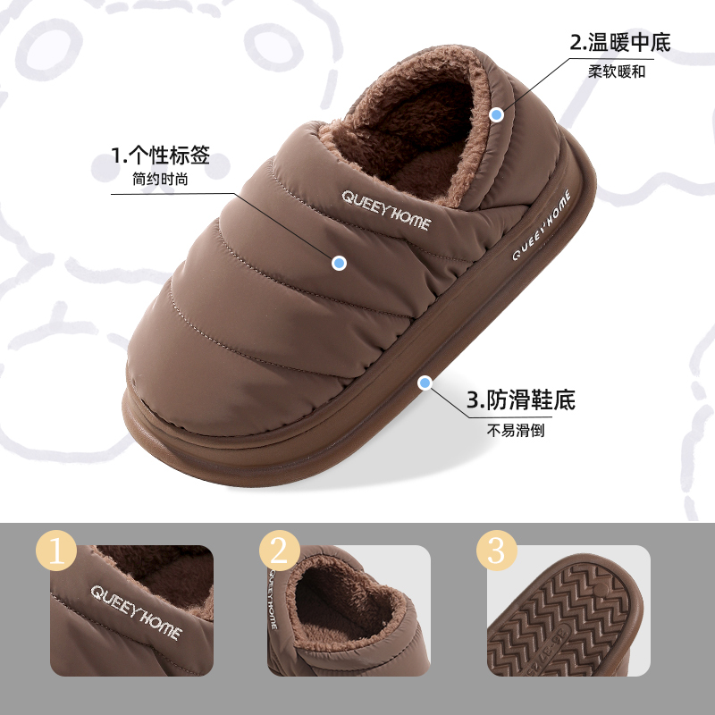 保暖毛绒棉拖鞋 防水防滑室内家居厚底2025新款 女 男冬季 包跟棉拖鞋