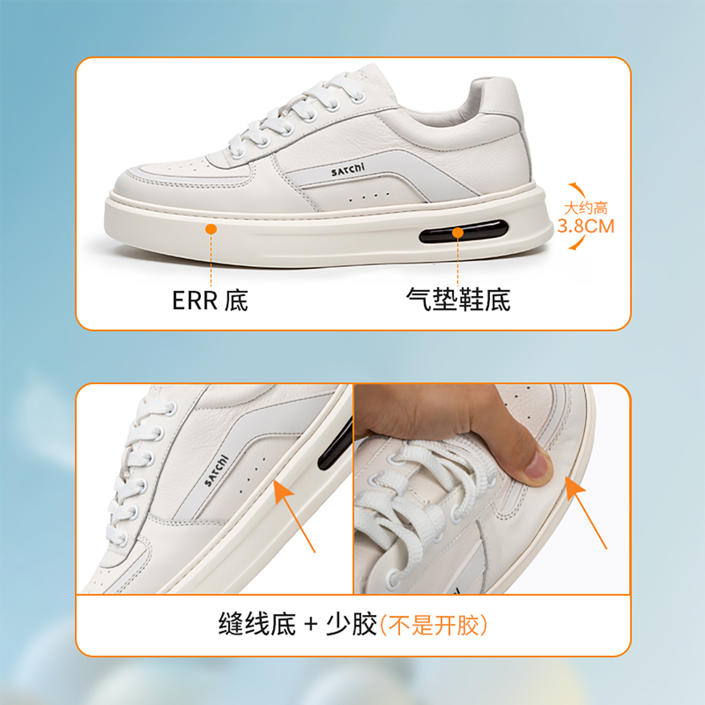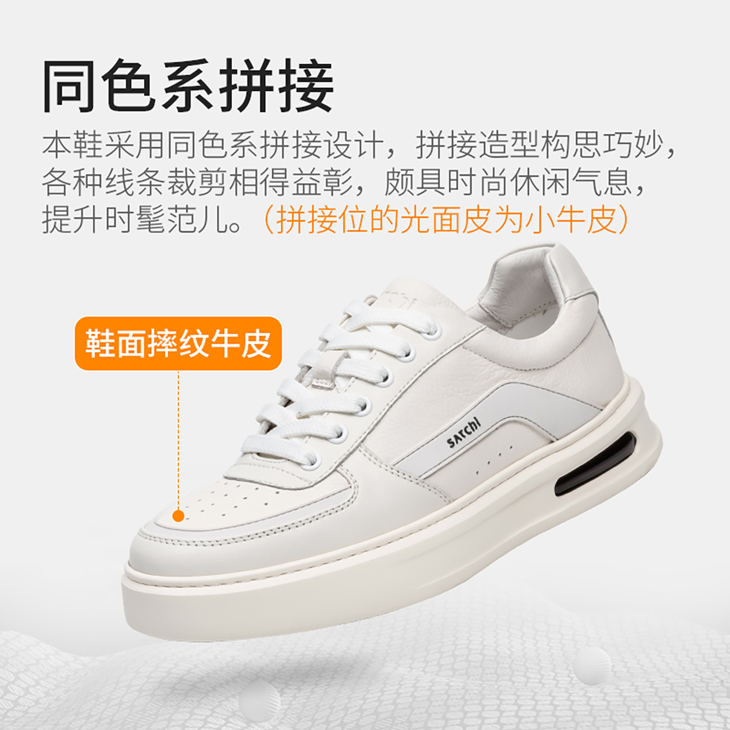 舒适年轻时尚 沙驰男鞋 真皮透气软底厚底面包小白鞋 休闲鞋 潮流 男士