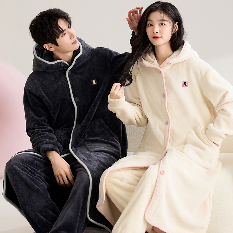 家居服套装 芬腾蓬蓬绒情侣睡衣女秋冬季 保暖抗静电珊瑚绒青年男士