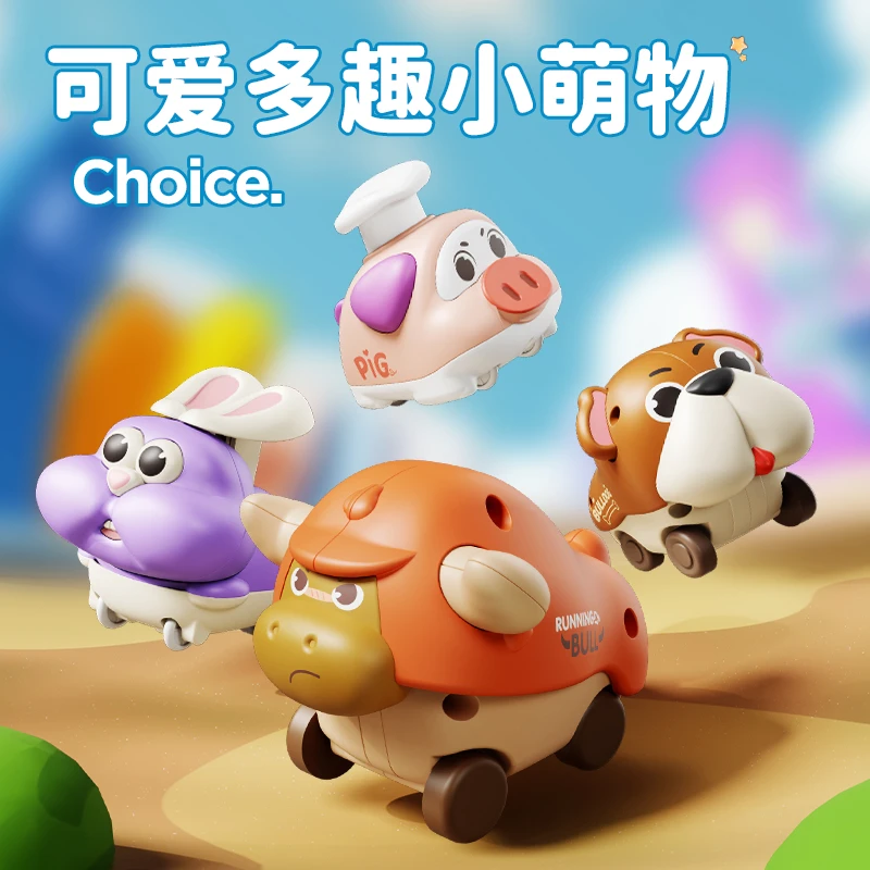 Q萌按压小牛动物卡通玩具车宝宝回力车惯性4轮小汽车滑行牛牛车