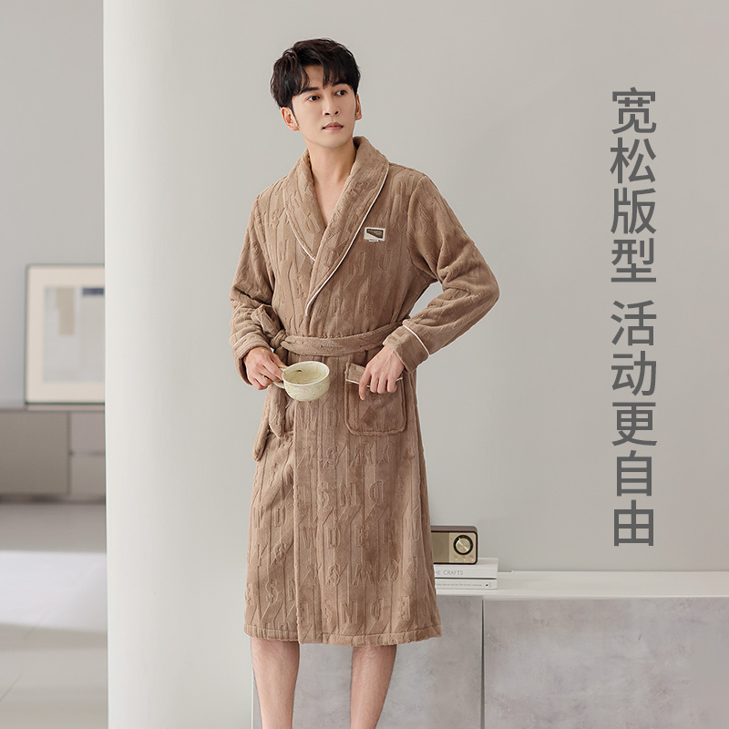 长款 加绒加厚长袖 法兰绒睡衣珊瑚绒家居服 冬季 新一步暖绒睡袍男士