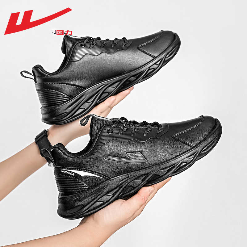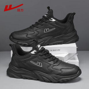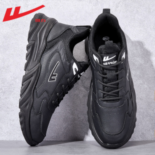 网面透气黑色跑步鞋 鸿星尔克运动鞋 防水皮面中年爸爸款 秋冬季 男鞋