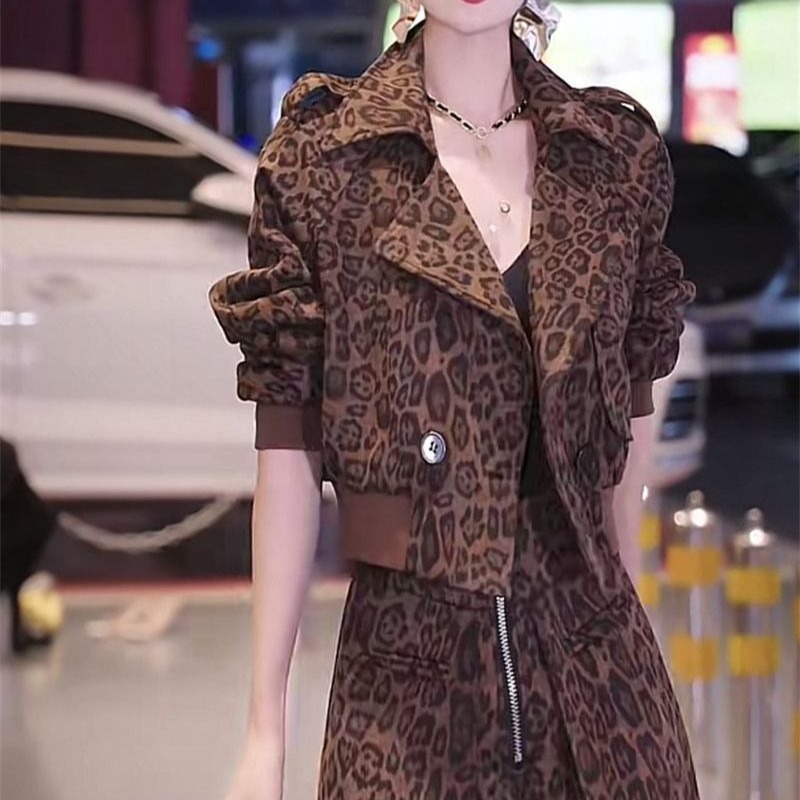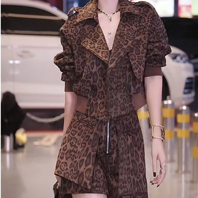 爆款 领外套搭配短裤 套装 豹纹设计西装 女2024秋冬复古时尚 网红时尚