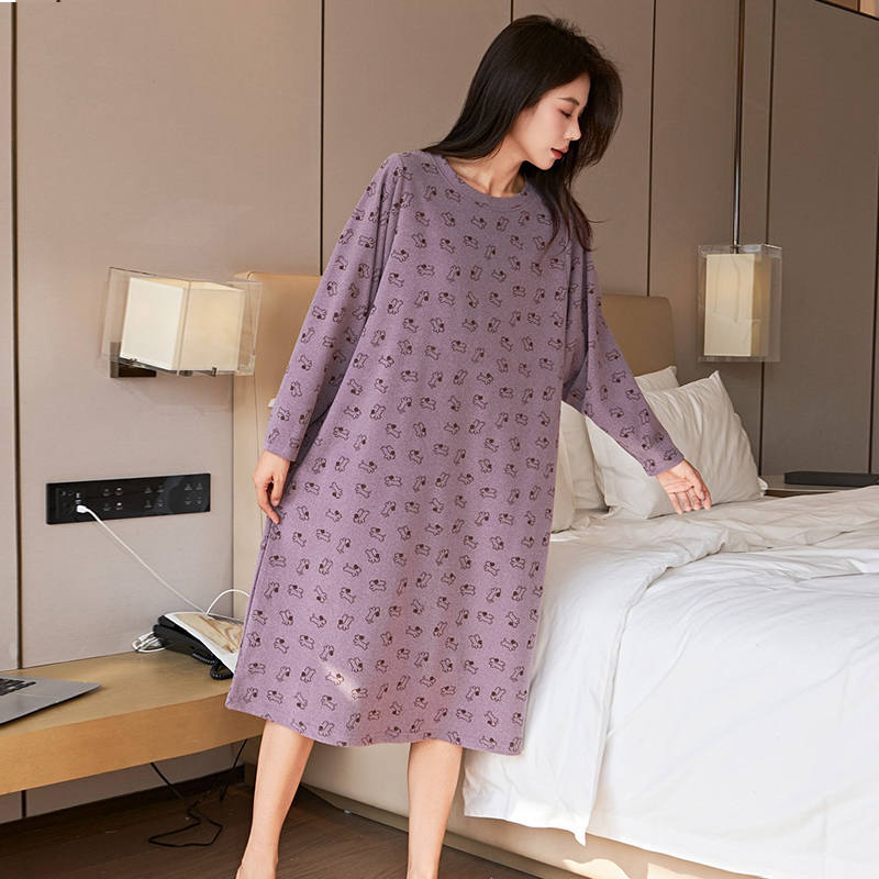 保暖家居服D 睡衣套装 MIIOW 猫人睡裙女秋冬宽松半边绒加绒加厚款
