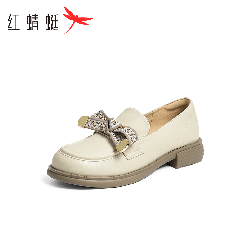 女2025新款 白色平底皮鞋 女鞋 子舒适软底单鞋 一脚蹬鞋 红蜻蜓乐福鞋