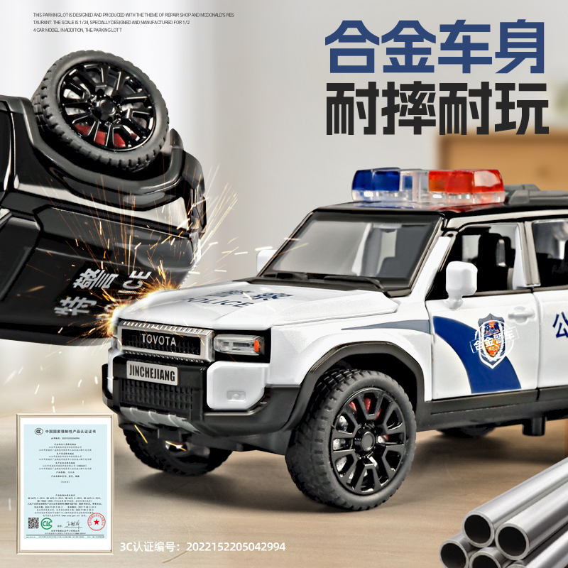 普拉多儿童玩具车警大号儿童合金小汽车模型公安仿真警车玩具男孩