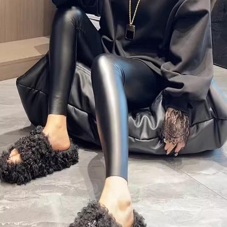 弹力芭比裤 大码 PU皮小脚潮 新款 秋冬小个子高腰显瘦直筒加绒皮裤