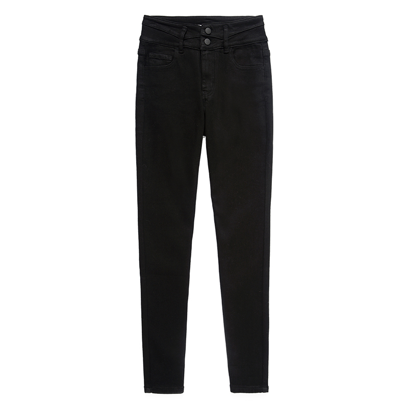 索玛时尚 拉链小口袋长裤 紧身黑色牛仔裤 秋冬棉质个性 女款 SOMSOM