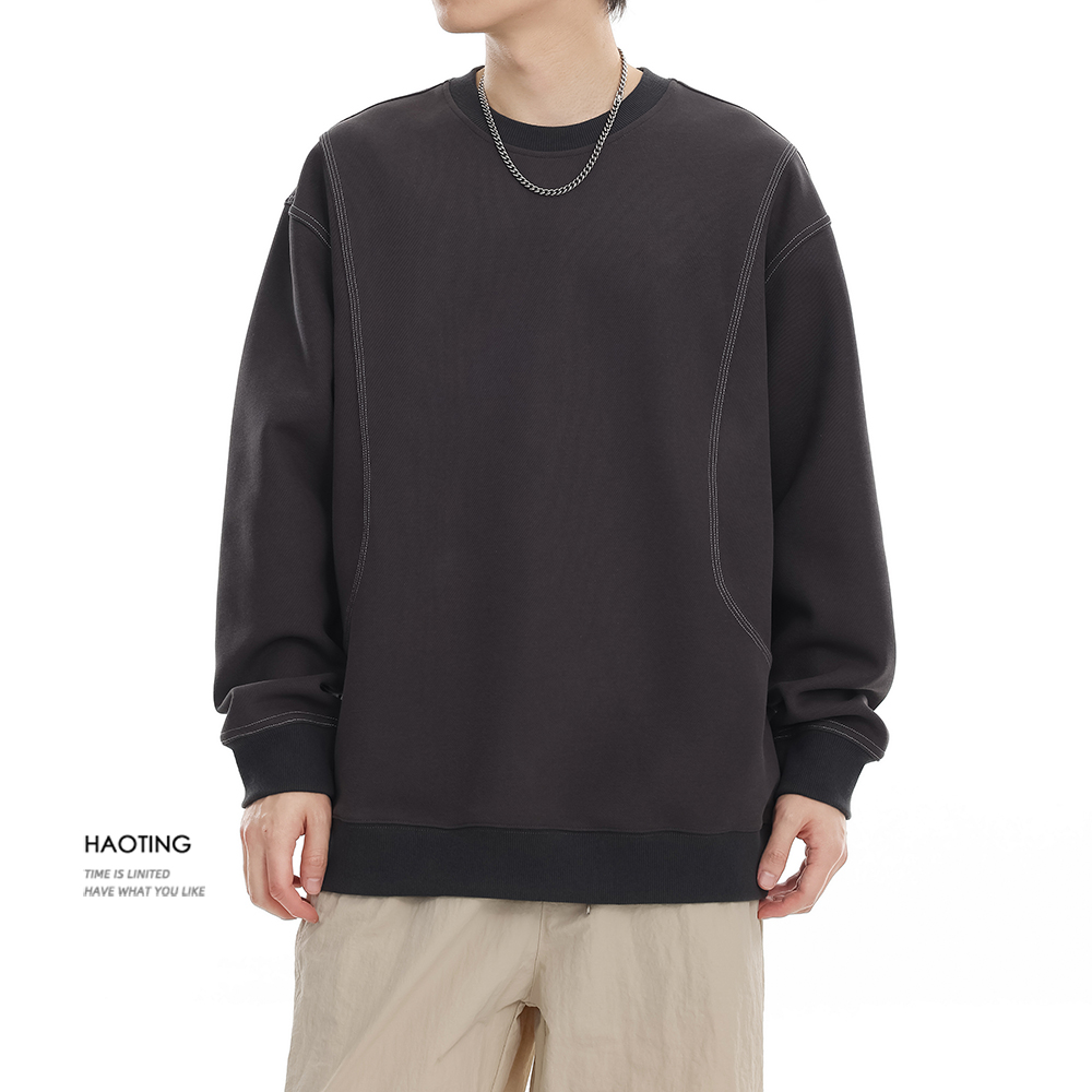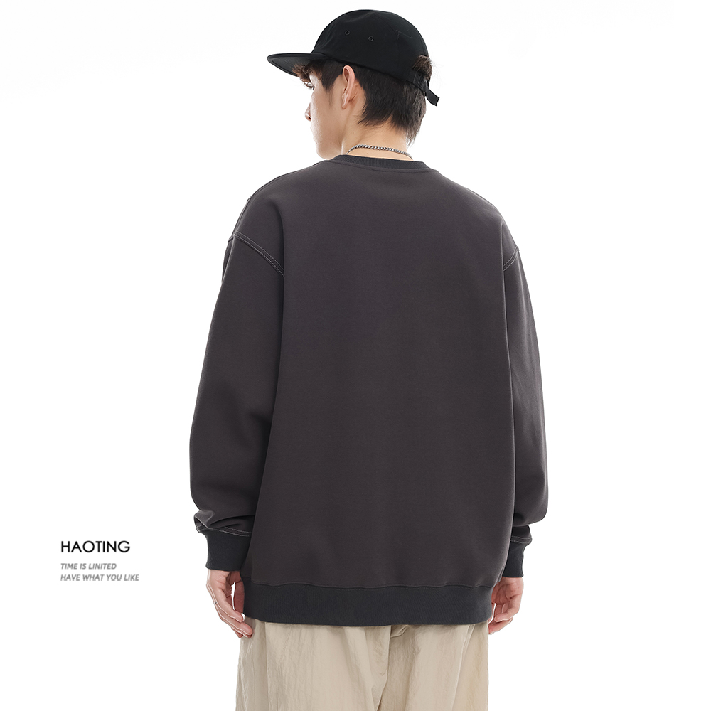 上衣 秋冬宽松百搭休闲高级感T恤长袖 豪霆 400克圆领套头卫衣男士