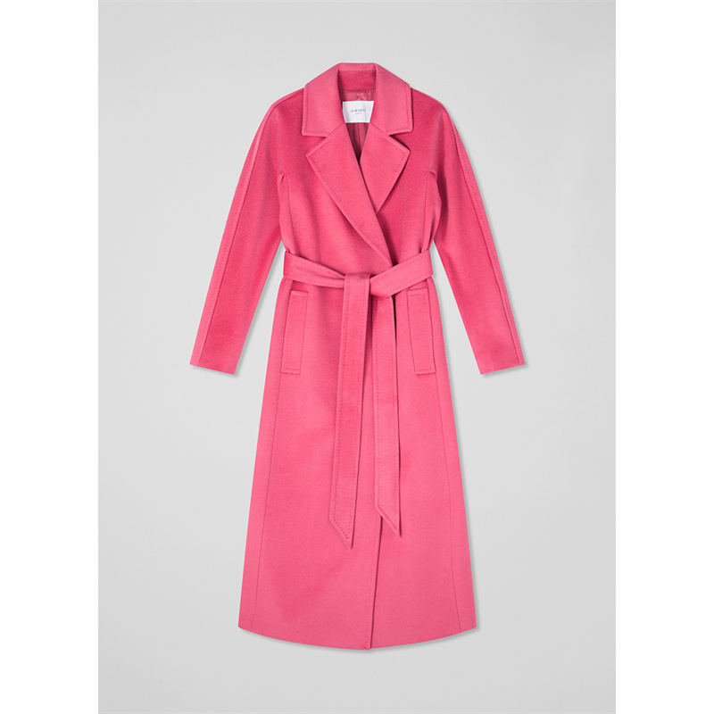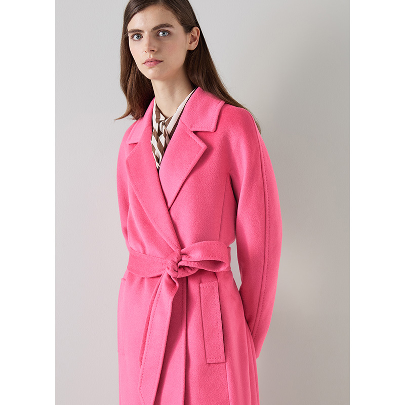 lkbennett蔷薇粉色绵羊毛大衣冬新款 单粒扣腰带设计 插肩袖