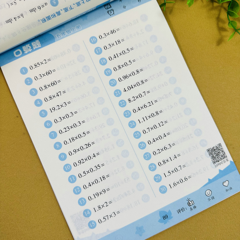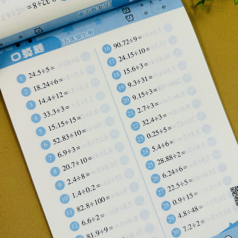 小学五年级上册数学口算题卡天天练人教版 5上数学计算题测试题每课一练课时训练作业本家庭作业本口算 同步口算题卡专项练习题RJ版