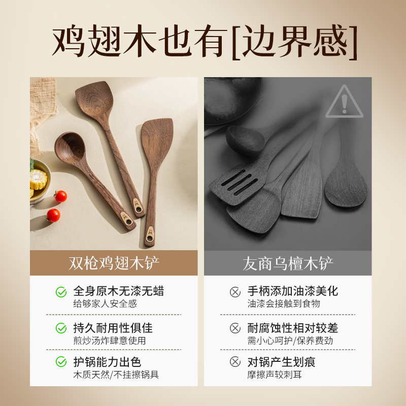 双枪锅铲鸡翅木铲子不粘锅专用炒菜铲子木锅铲耐高温炒勺木勺饭勺