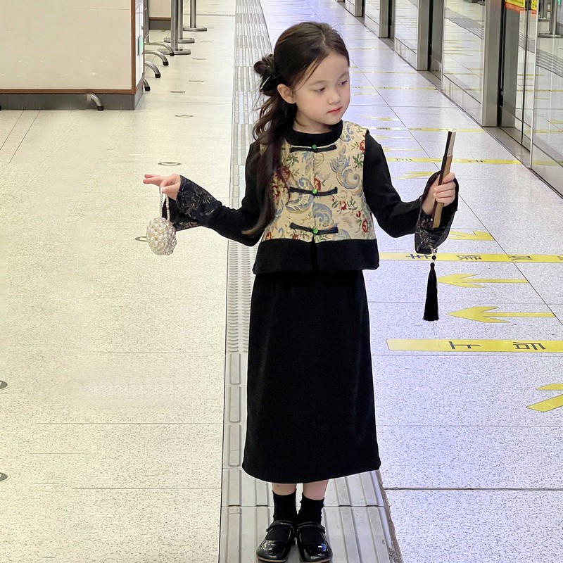 古风唐装 儿童裙子国风高级大童套装 连衣裙2025新款 女童汉服春秋款