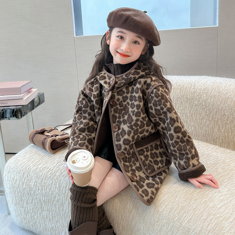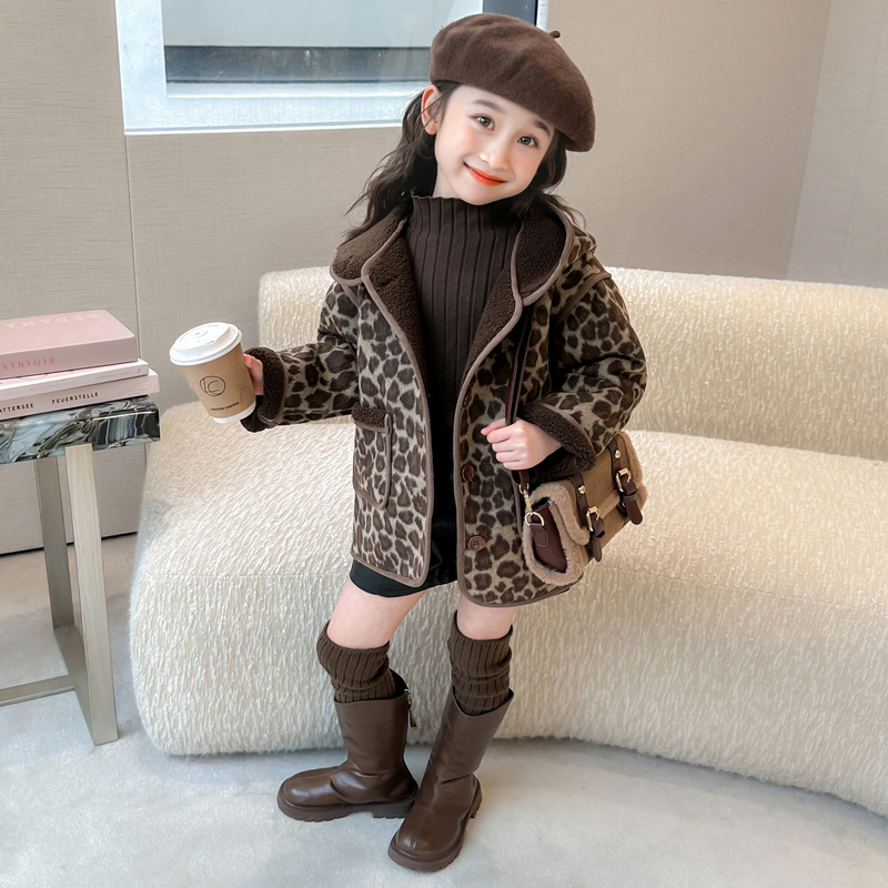 豹纹毛毛衣女宝宝洋气冬装 女童加绒外套秋冬季 儿童装 韩版 2025新款