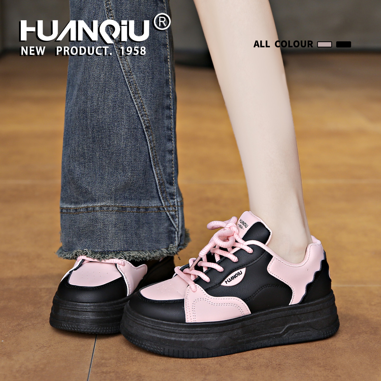 女秋季 小白鞋 学生厚底增高百搭运动鞋 子休闲鞋 安踏轻松 女鞋 板鞋