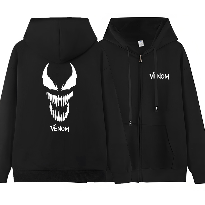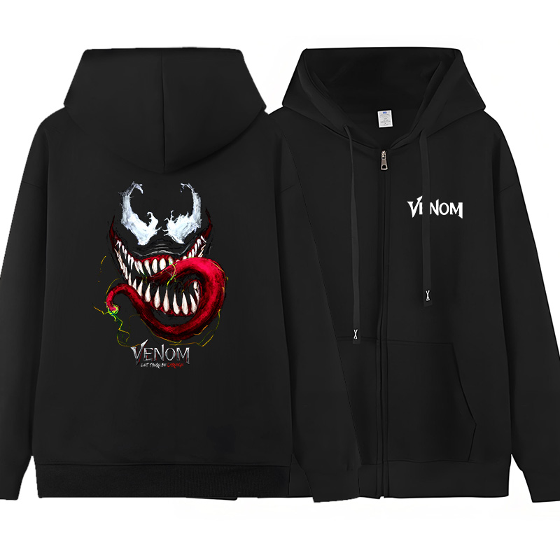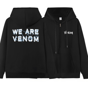 漫威毒液3周边衣服最后一舞秋冬加绒加厚连帽卫衣男装 拉链帽衫