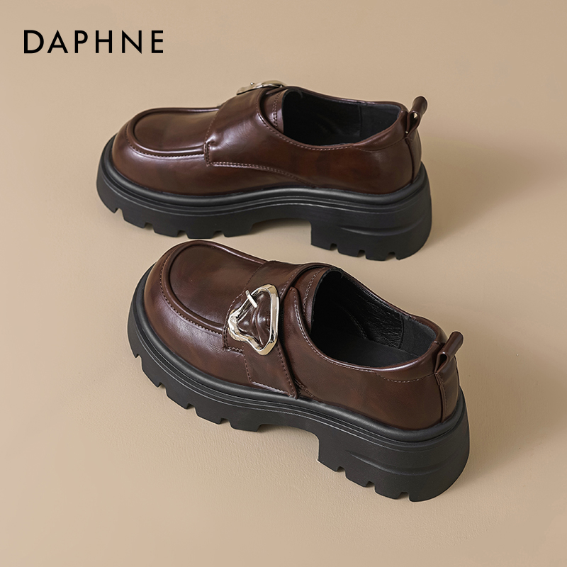 美拉德小皮鞋 秋冬厚底英伦一脚蹬单鞋 女2025新款 达芙妮棕色乐福鞋