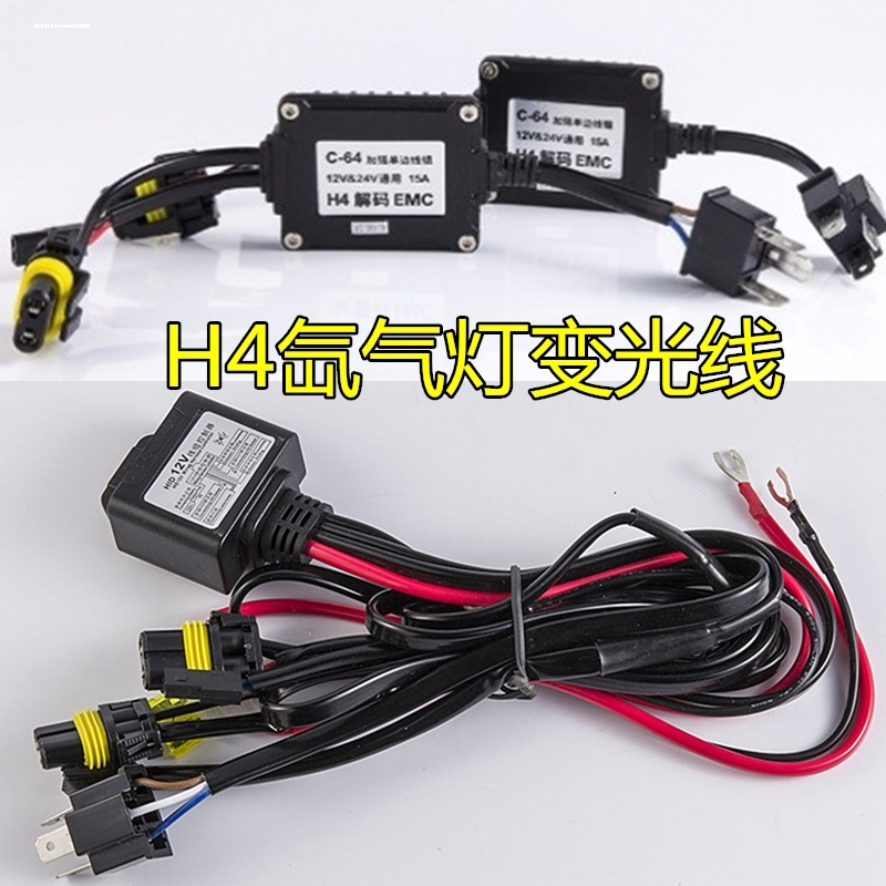 12V24V通用氙气灯H4专用线组控制器一拖二一拖一变光专用透镜线束