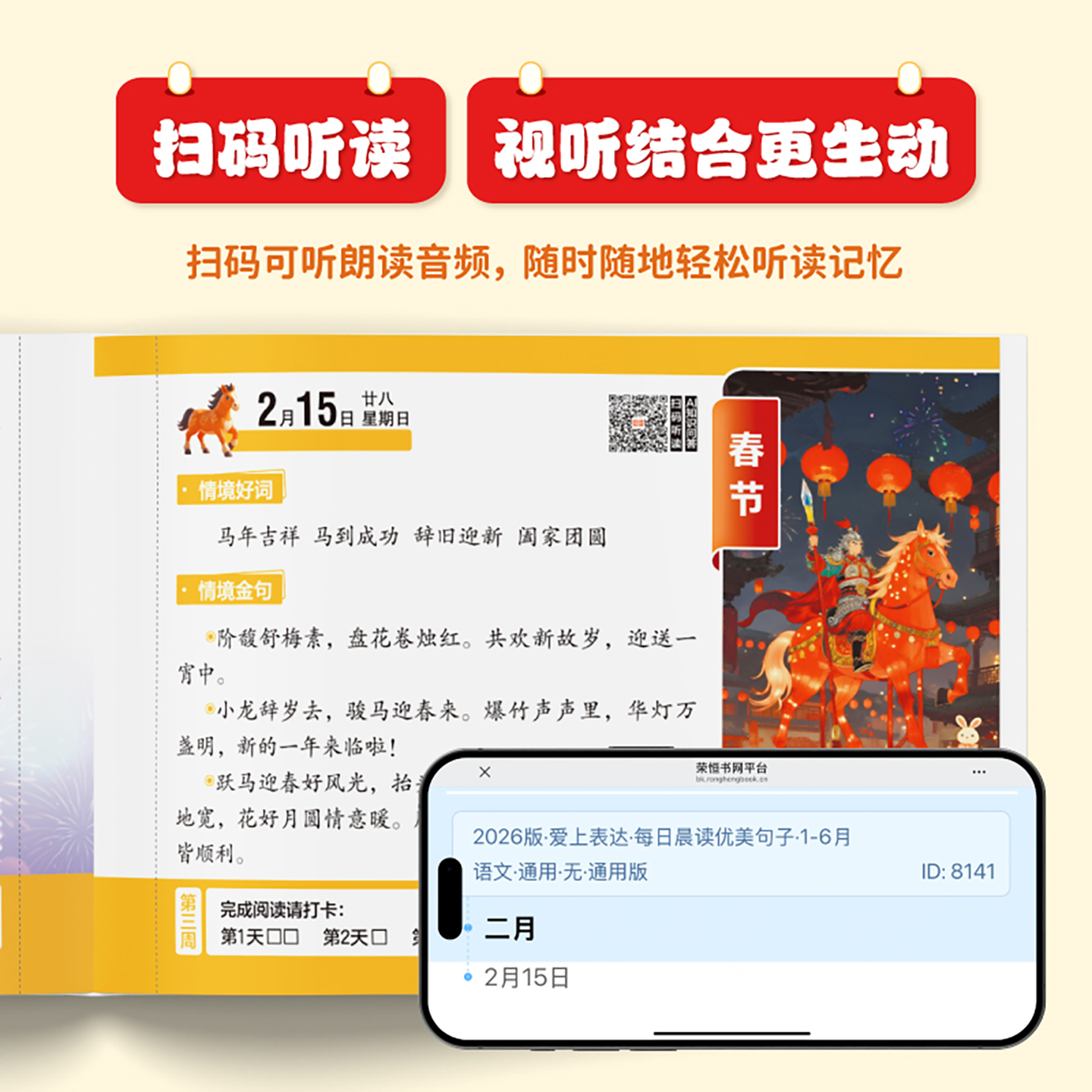 2026马年新版 6年级日有所诵日历美文 每日晨读情境金句台历小学生优美句子积累让孩子爱上表达一日一读好词好句好段作文素材大全1