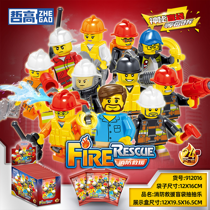 哲高积木人仔宇航员消防员荒漠特警男孩拼装 玩具6到12岁
