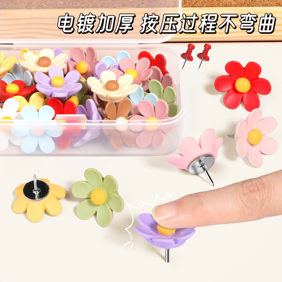 30个ins花朵彩色图钉创意可爱金属按钉毛毡软木板照片墙幼儿园装 饰大头钉工字钉摁钉定位器美术卡通造型按钉