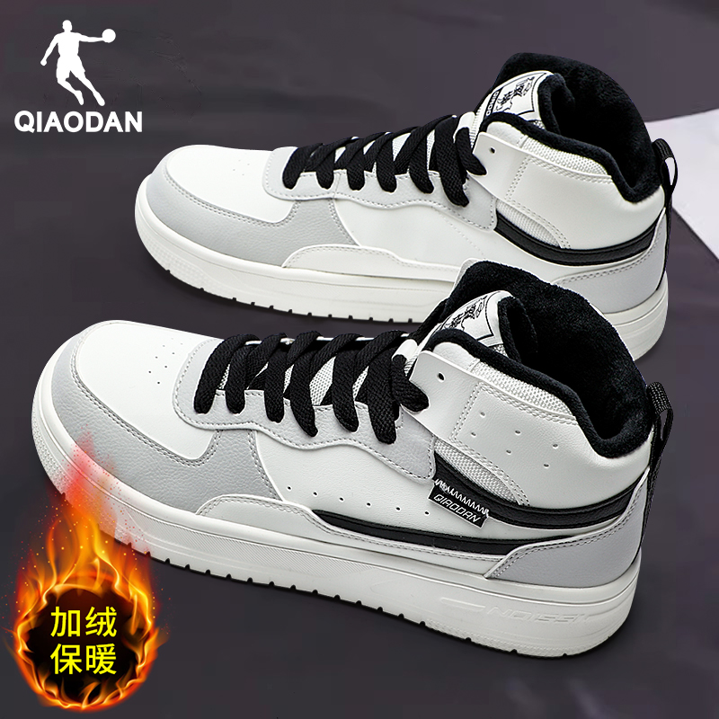 学生黑粉运动鞋 乔丹秋季 女款 高帮板鞋 皮面保暖厚底增高女休闲 新品