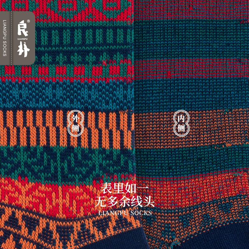 良朴袜子情侣款 男女民族风棉袜日系吸汗潮袜春秋长袜复古中筒袜