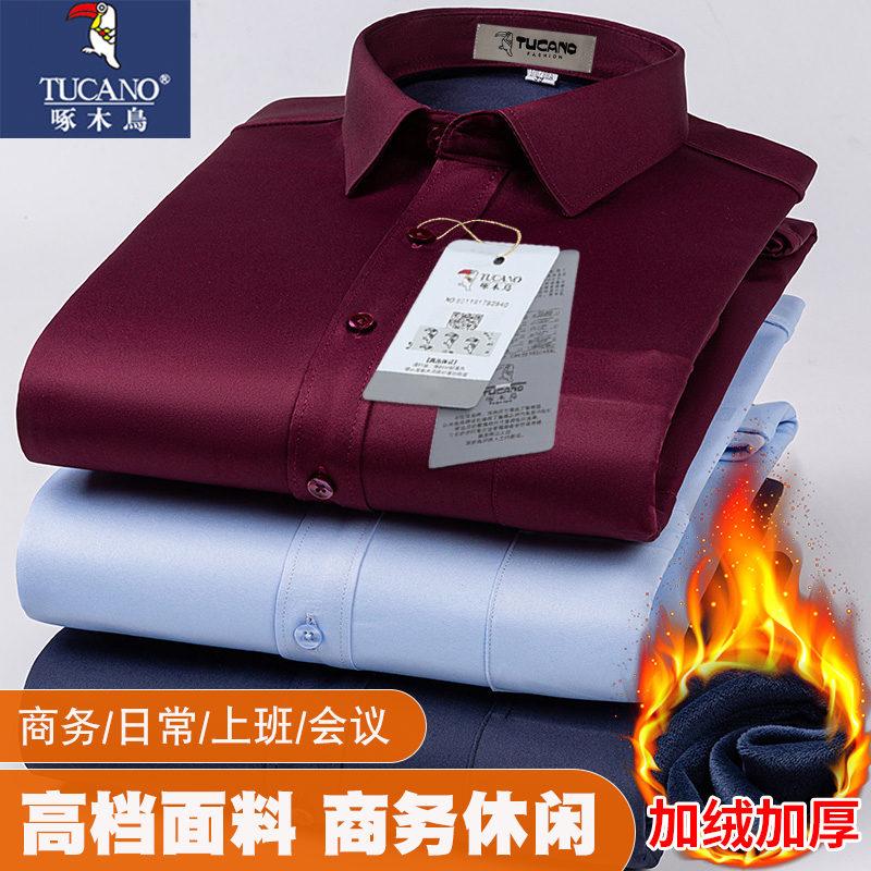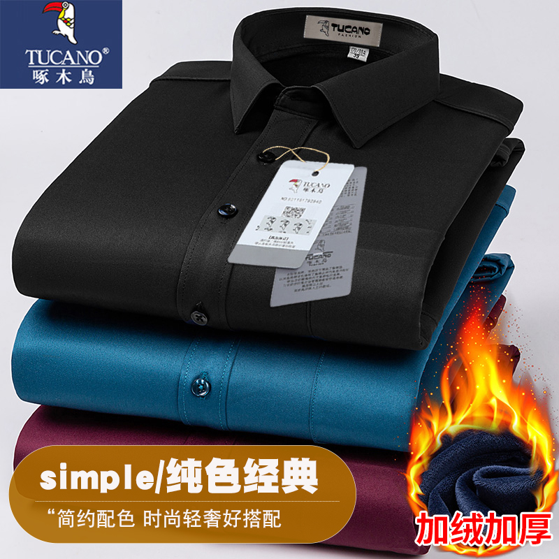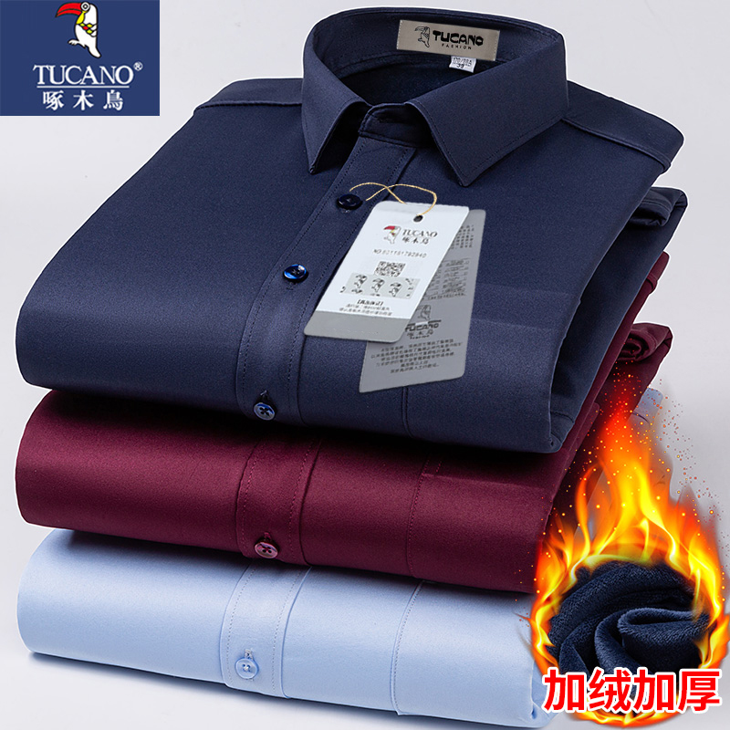 冬季 保暖衬衫 男士 植绒衬衣免烫商务长袖 男 加绒加厚男式 啄木鸟新款