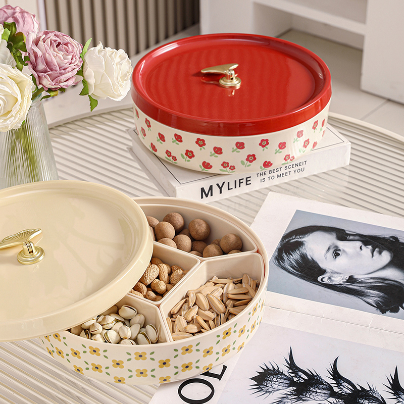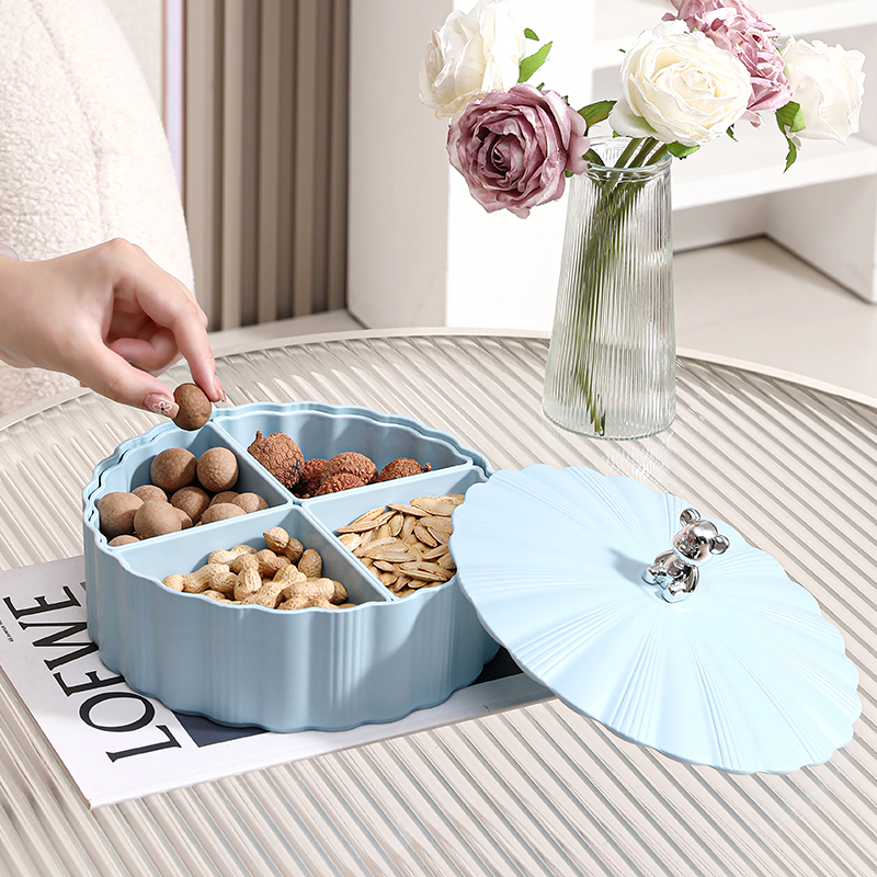 轻奢密封坚果零食摆放盘新款 分格干果盘收纳盒家用客厅茶几果盘