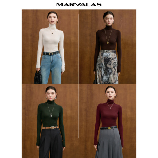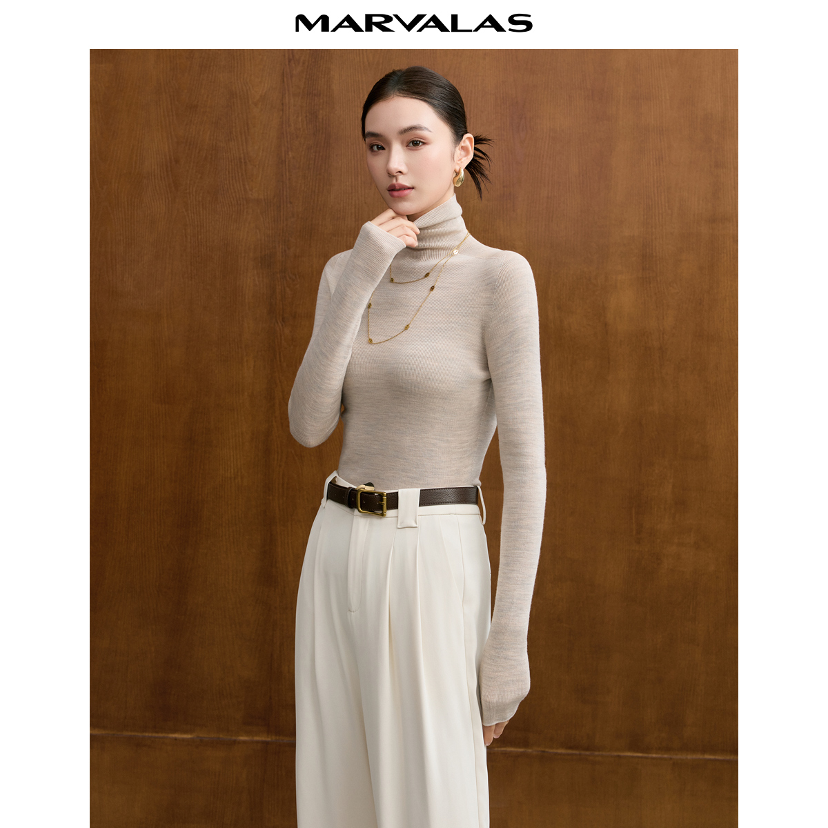 2025冬季 女毛衣打底衫 新款 套头衫 高领修身 曼德诗100%绵羊毛针织衫