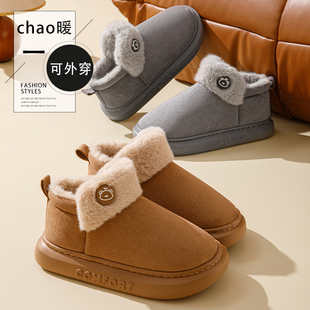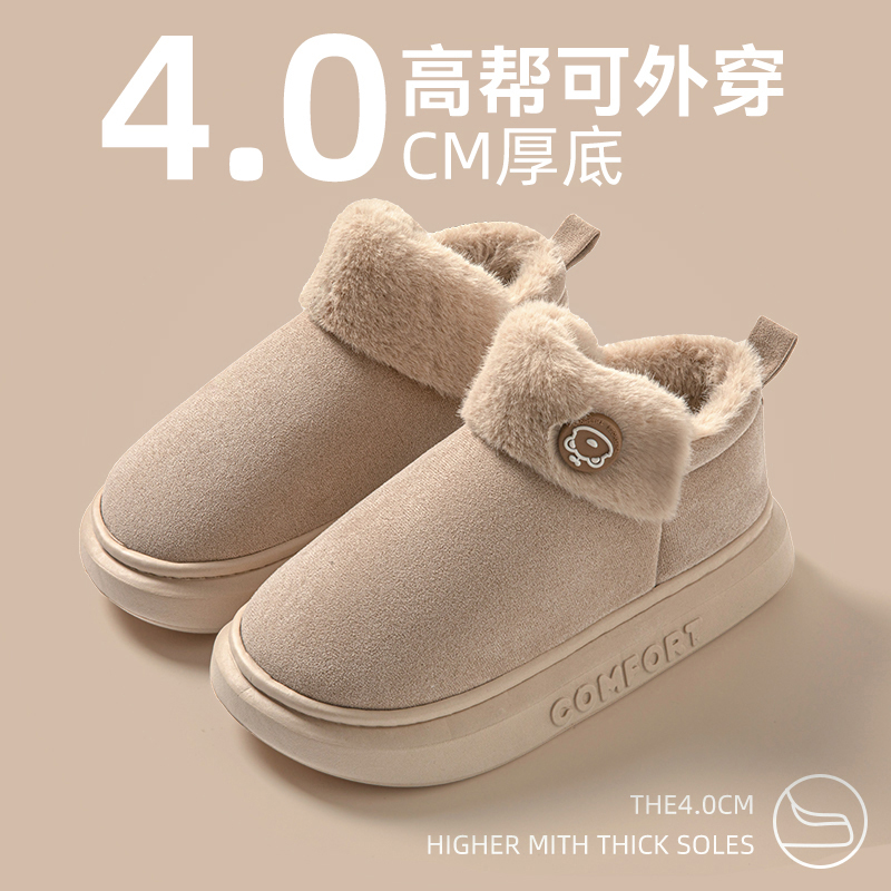 家居保暖加绒外穿高帮防滑毛绒棉鞋 冬季 女 2024新款 厚底雪地靴女款