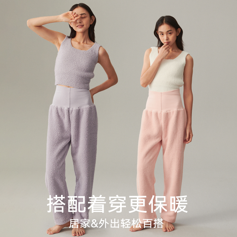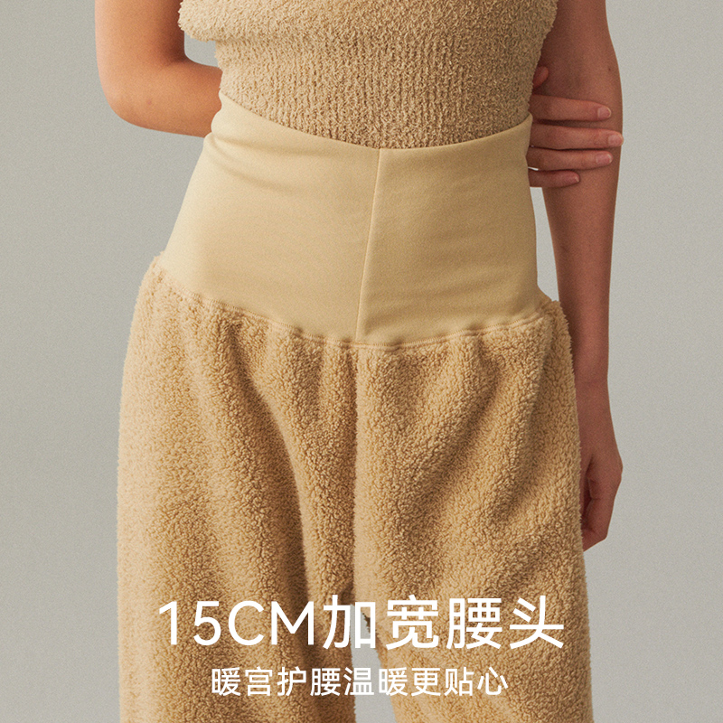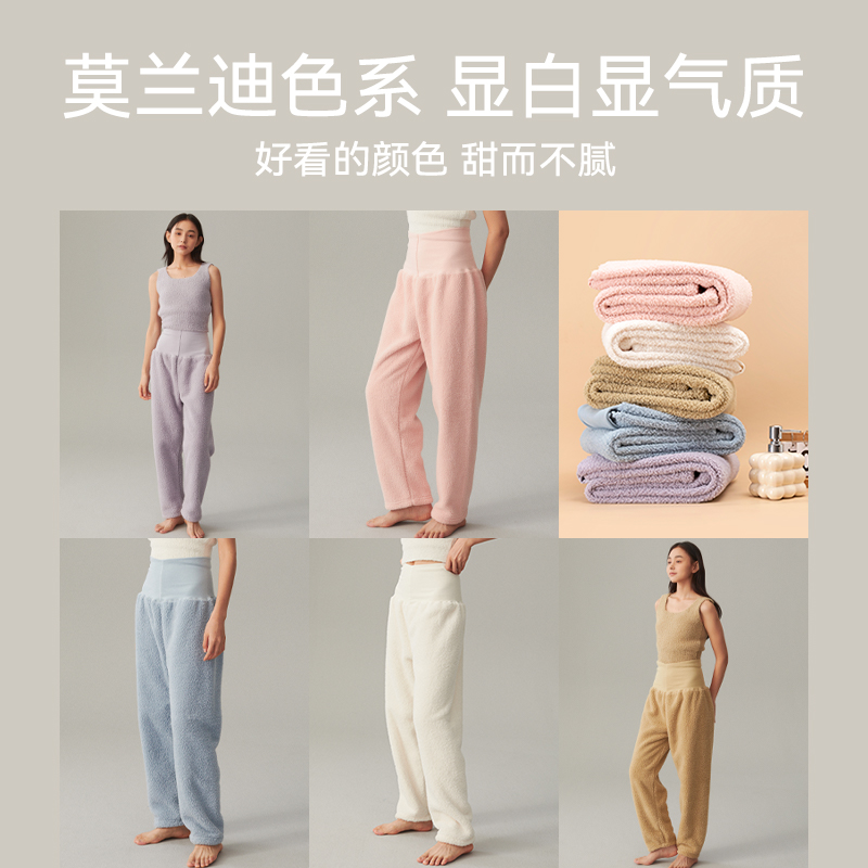 女士秋冬季 半边绒加绒加厚居家裤 新款 保暖裤 高腰暖宫裤 珊瑚绒睡裤