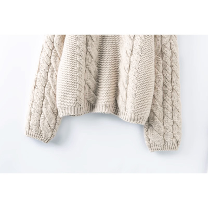 毛衣羊绒衫 春竹2025秋冬新款 100%山羊绒复古绞花半高领羊绒套衫