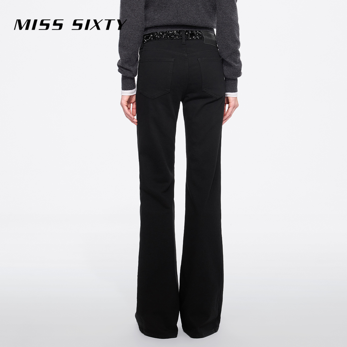 Sixty2024冬季 重工钉珠磨毛小黑裤 新款 女复古喇叭裤 牛仔裤 Miss