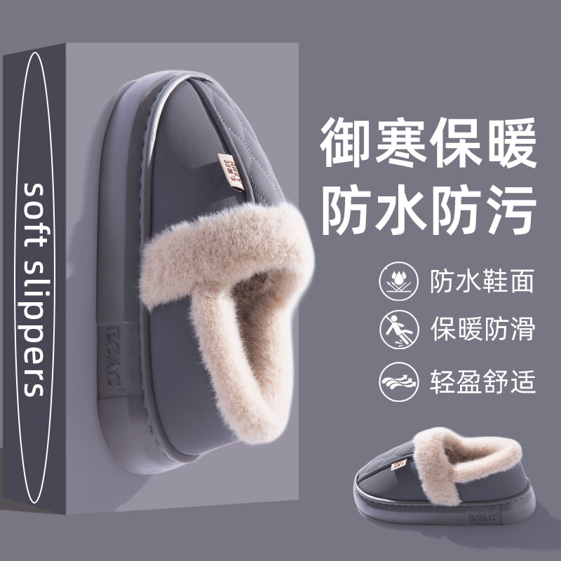 男士 男款 秋冬季 室内家居加绒加厚防滑外穿棉鞋 2025新款 防水棉拖鞋