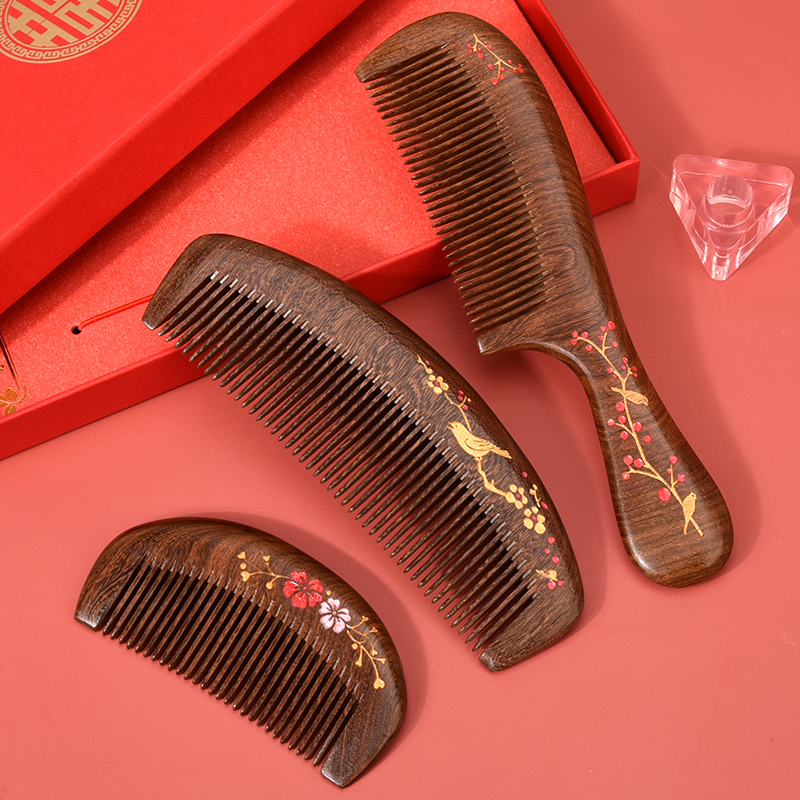 金丝檀木梳子女士结婚梳子一对礼盒刻字新婚生日礼物送女友伴手礼