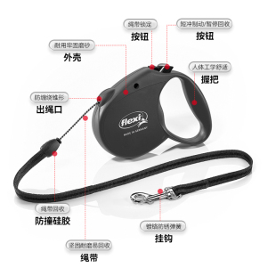 flexi福莱希标准系列自动伸缩牵引绳狗绳链子大中小型犬 自营