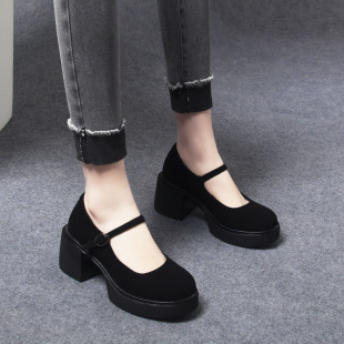 2025新款 粗跟玛丽珍小皮鞋 春秋单鞋 高跟鞋 复古超软羊皮女鞋 厚底鞋