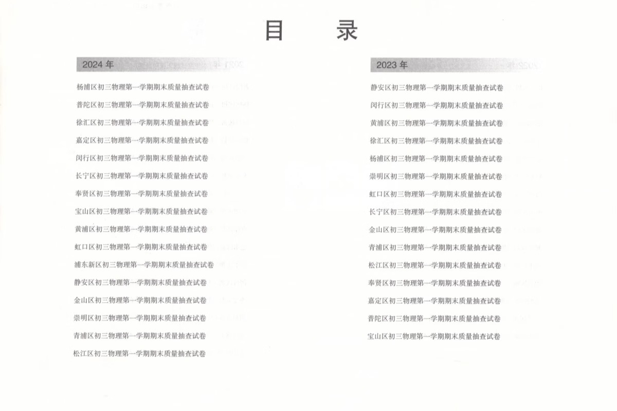 合订本文化课强化训练 领先一步上海中考物理一模卷仅试卷不含答案 上海市各区初三初中九年级期末抽查模拟试卷精编 2024年版 2021