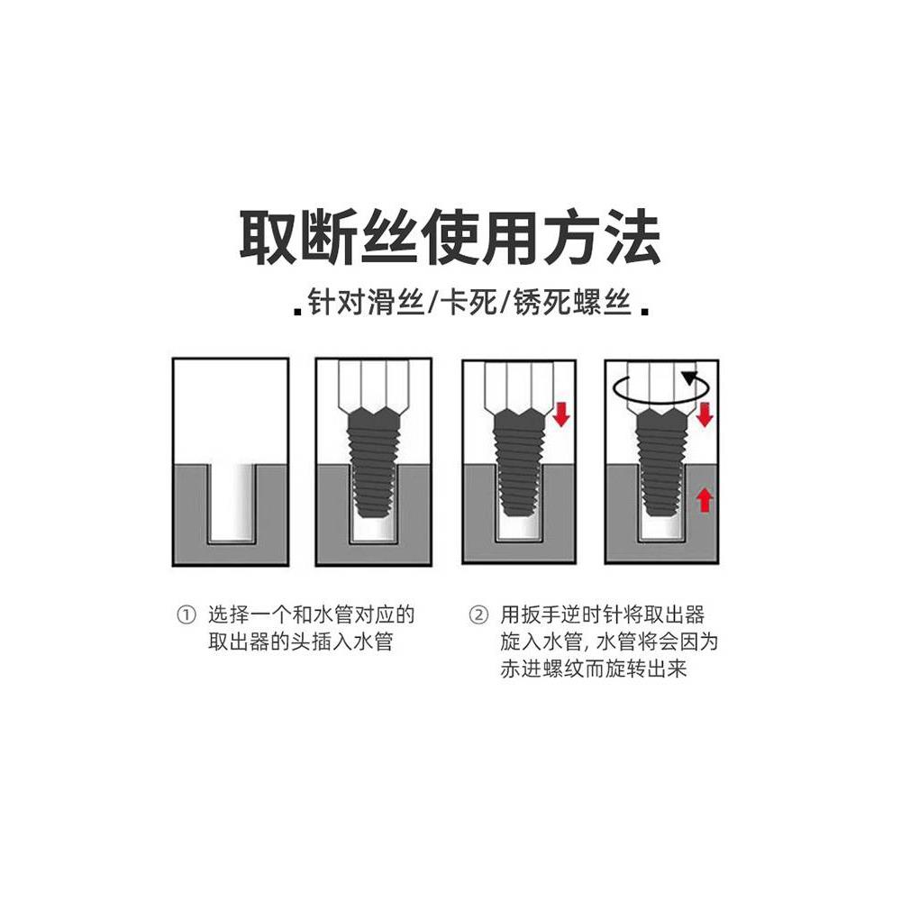 水龙头断头螺丝取出器三角阀水管滑丝断管万能丝锥反牙取