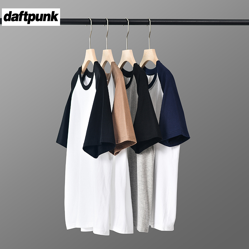 宽松撞色拼接半袖 DAFTPUNK美式 t恤男夏季 短袖 男女 240G重磅插肩袖