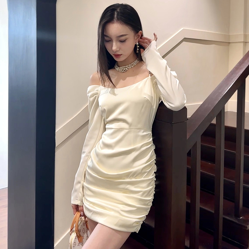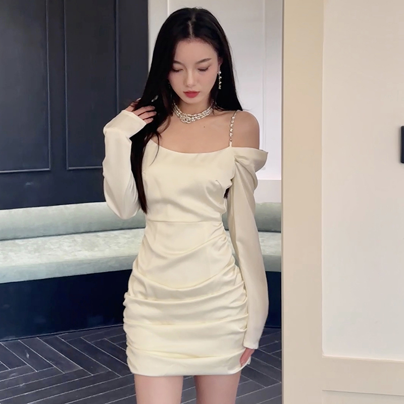生日party白色小礼服裙平时可穿性感减龄小个子露肩吊带连衣裙女