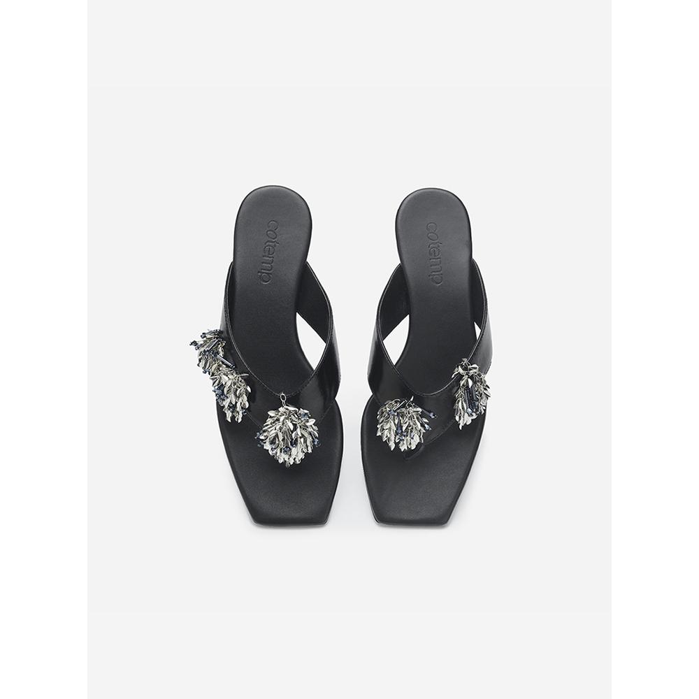 手工钉珠人字拖闪亮金属叶片平底凉鞋 经典 女 Valeria cotemp
