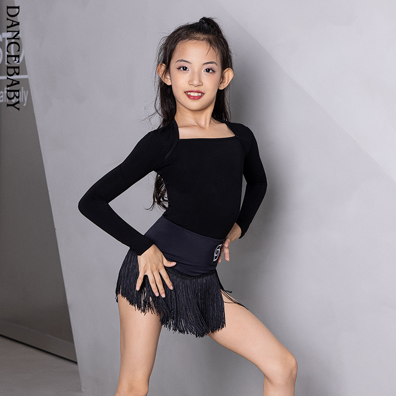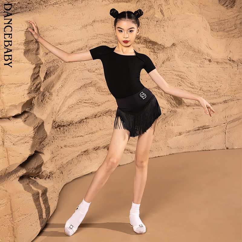 Dancebaby拉丁舞练功服女儿童春夏跳舞蹈上衣短袖 专业上衣DAS224X