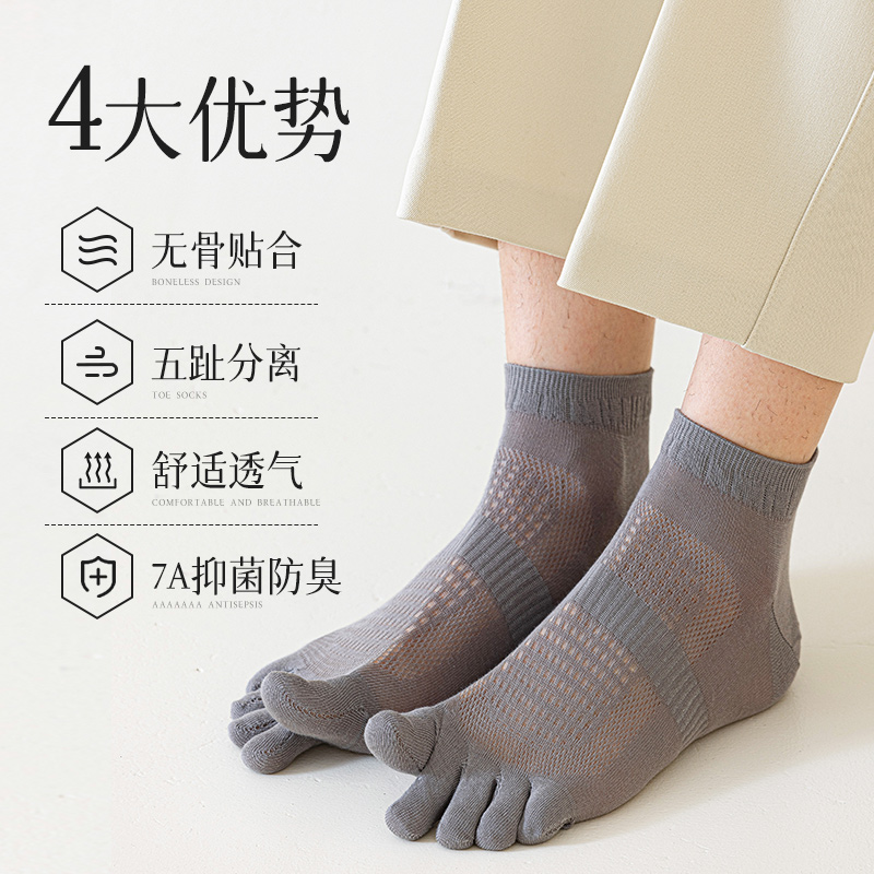 纯棉无骨抗菌防臭吸汗男款 薄款 夏天分趾脚趾袜短袜 夏季 五指袜男士