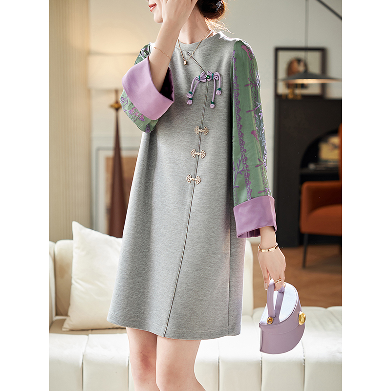 新款 乐町假两件小香风连衣裙女冬季 蝴蝶结胸针可开门襟简约小 预