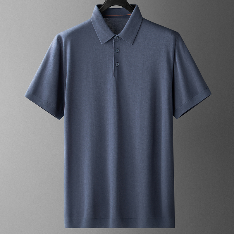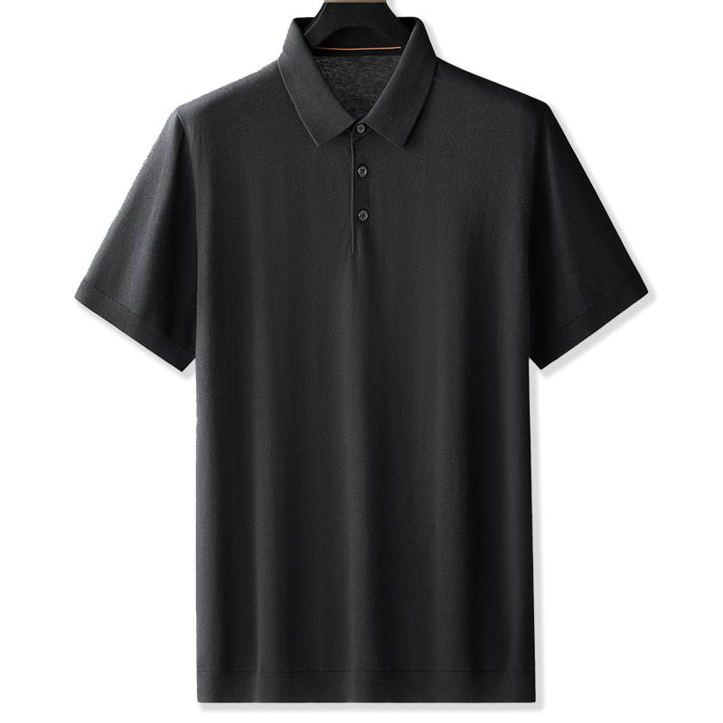 体恤加肥加大宽松翻领桑蚕丝T恤衫 大码 莱赛尔棉针织短袖 夏装 男士
