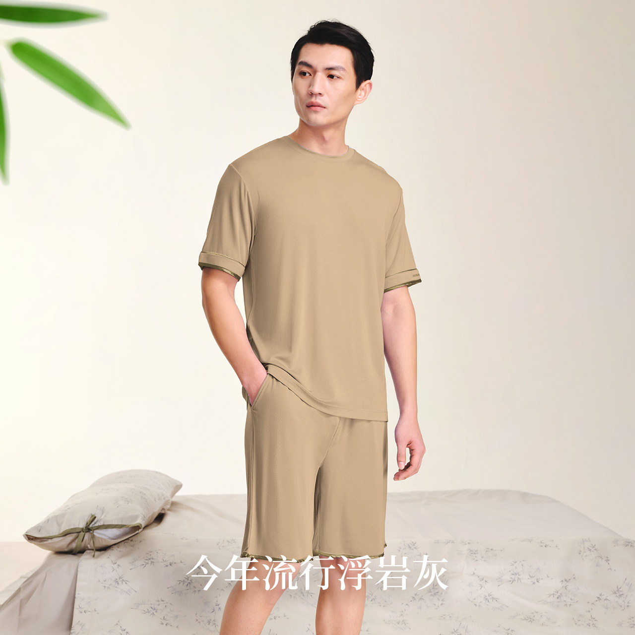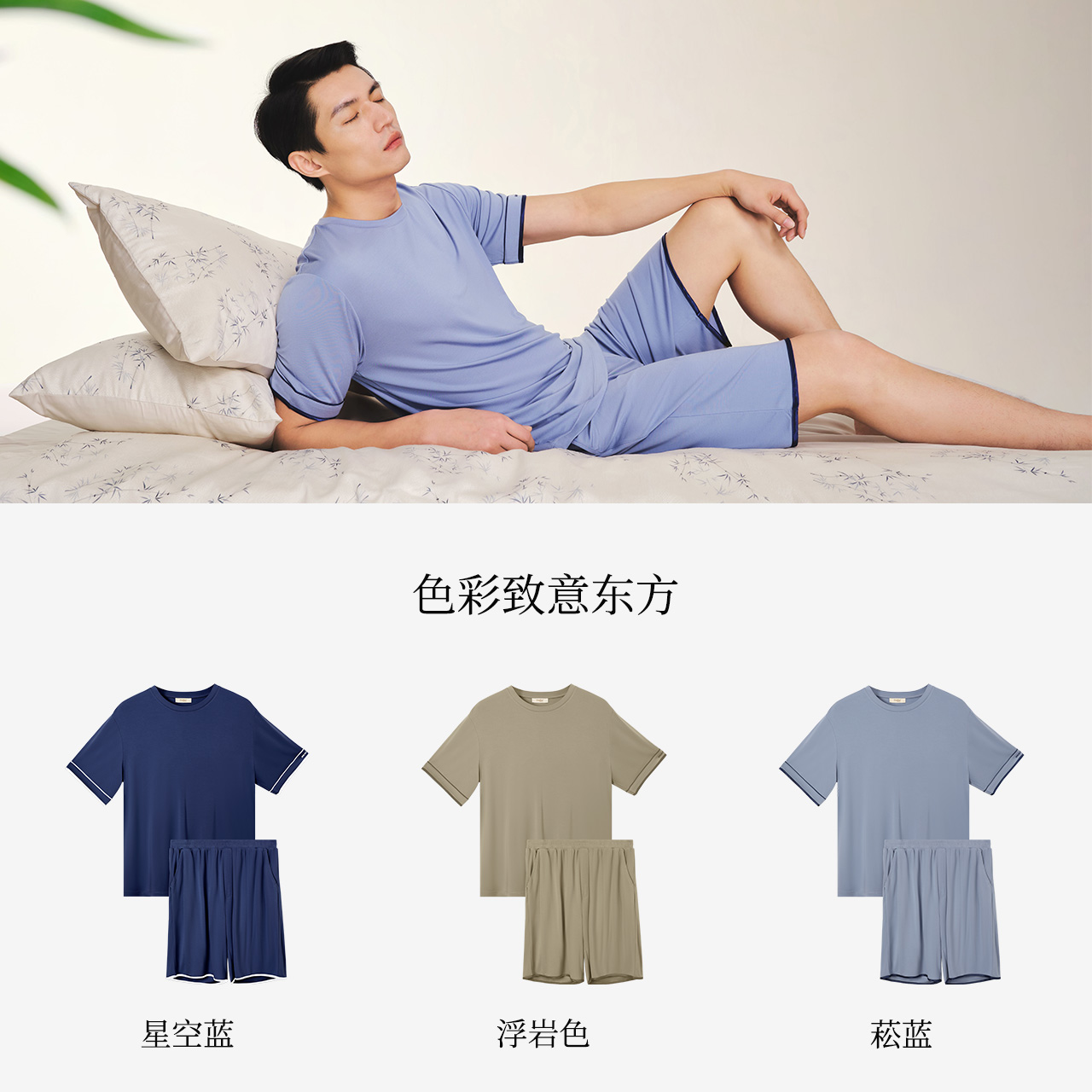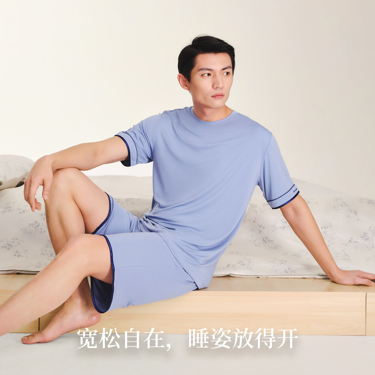 睡衣2025夏季 家居服套装 薄款 短裤 圆领可外穿 莫代尔短袖 金利来男士