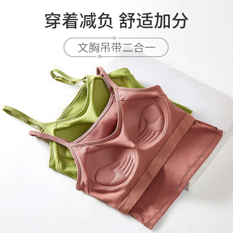 春夏漫画胸吊带春带胸垫背心女小胸外扩显大打底上衣内搭外穿薄款