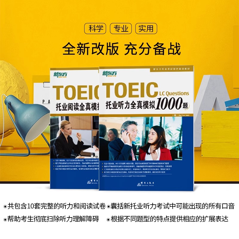 新东方TOEIC托业阅读全真模拟1000题 TOEIC新托业考试历年真题系列用书 听力全真模拟1000题 题库 英语书籍2025 2026备考试题 任选